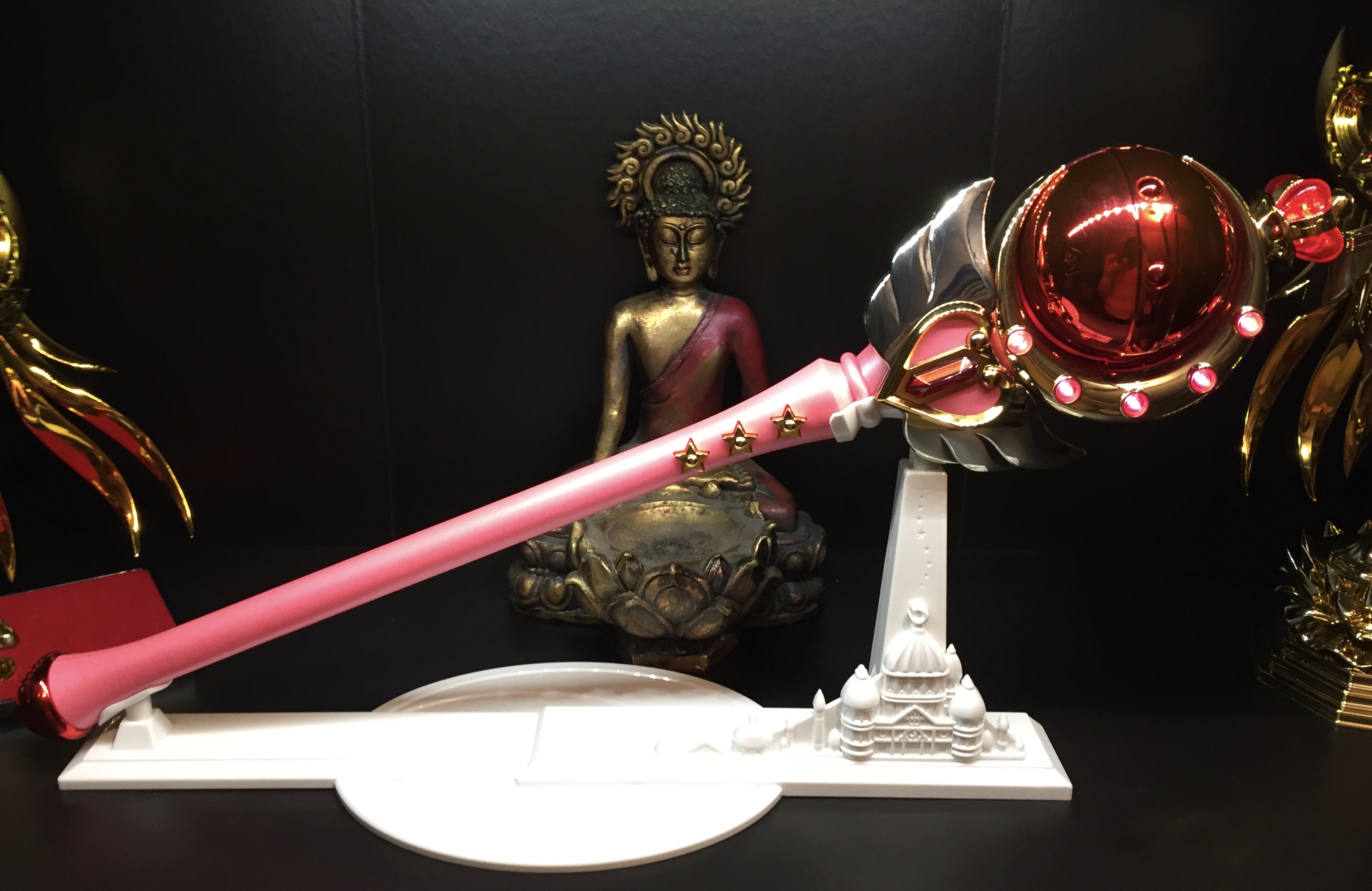Bref, en conclusion, une belle reproduction du Cutie Moon Rod de l’anime, mais malheureusement une finition de mauvaise facture au niveau de la boule rouge (j’ai lu l’avis de plusieurs personnes ayant le même problème sur Amazon) et une impression plus cheap que le Moon Stick. Malgré tout, un objet intéressant pour la collection.